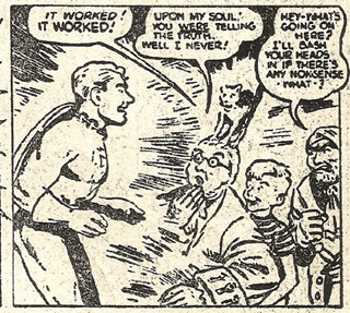 They are all pretty short, self-contained, stories that follow a standard Golden Age pattern. None that are 100% awful but neither are they particularly good or memorable either. They also are certainly not futuristic space stories promised on the cover. Thankfully the others strips in this issue make up for that.
