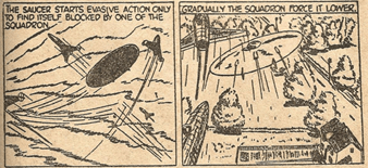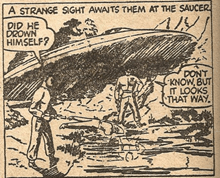 It turns out these are aquatic creatures from the sea who cannot survive on land. The captured saucer is to be used by Don and Bill for an attempt to find the people this craft belongs to.