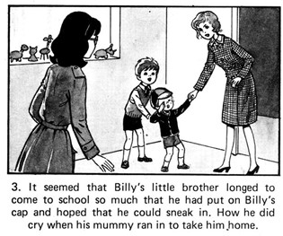 The same also applies to the next tale. Tim’s little Brother Billy wants to come to school badly even though he is too young and insists on coming into Billy’s class. So Miss Muddle gives him some paper and asks him to draw a picture as homework.