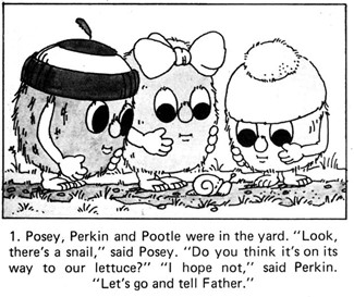 Next is a spin-off of the short-lived BBC TV show about little lumps of fluff. The Flump children notice snails coming towards Father’s lettuce. Father talks to grandfather Flump about it, who then takes the snails away and gives them old lettuce to keep them away.