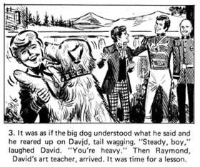 Not the French satirical fantasy, rather the tale of young pseudo-Germanic nobleman. David is playing with his bog Bruce but has to go in for an art lesson. Suddenly a stranger arrives at the front door wanting to ask about the dog. To be continued.