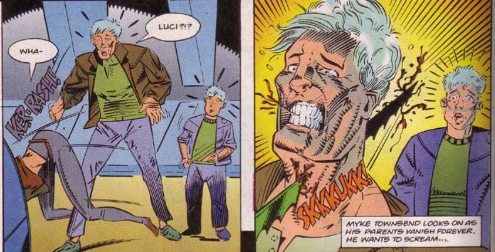 We also get a one page interlude where teenager Myke Townsend sees his parents get murdered on his way back from his graduation in computer studies. What relation this has to the rest of the story, I cannot guess.